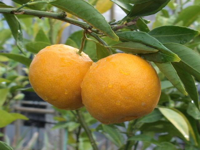| 血糖値や血圧を抑圧を抑制する。健康力を持つ薬用的みかん。果皮や果汁に、含まれるフラボノイドに痛風や、慢性関節リウマチの予防、発ガン抑制・抗炎作用がある。 8月〜9月 刺身のつま・酢の物 10月〜11月 ジュースで加工 12月〜1月 完熟して生で食べる |