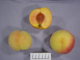 | 本種は(独)農研機構『まさひめ』×『あかつき』の交配育成された品種である。 果皮は黄色で陽光面が少し赤く着色する。肉質はやや緻密で糖度も14%と高く、食味良好である。 <日本果樹種苗協会より許諾> |