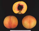 | 樹姿はやや直立し、樹勢は強い。花粉を有し結実良好。果形は扁円形から円形である。 果皮は黄色、果皮の荒れや裂果が少なく外観が優れ無袋栽培が可能。果肉も黄色で、糖度13〜14%と食味良好。 <日本果樹種苗協会より許諾> |