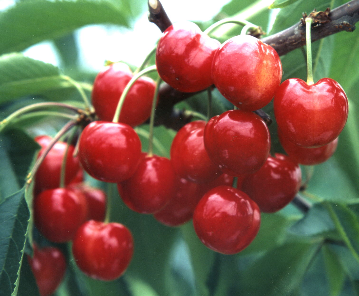 | 短心臓形、鮮やかな紅色をしている。果肉は柔らかで多汁、大粒で甘味もあり、葉が大きく豊産性の品種である。 受粉樹「紅さやか・ナポレオン・高砂」など |